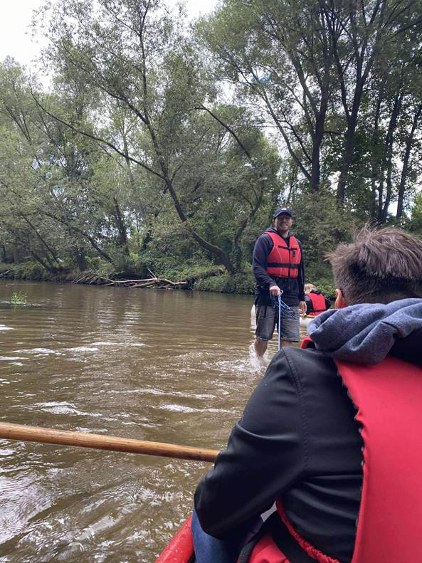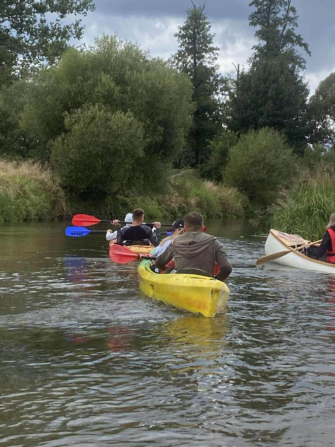 W przerwach uczestnicy mieli okazję posłuchać opowieści instruktorów o rzece i jej otoczeniu. Padały informacje o rybach, ptakach i roślinach, które tworzą ten ekosystem, a także o zagrożeniach wynikających z działalności człowieka. Niby zwykła przerwa na odpoczynek, a jednocześnie lekcja ekologii zakorzeniona w bezpośrednim doświadczeniu przyrody. Najbardziej emocjonującym momentem był odcinek rzeki z silniejszym nurtem. Tam trzeba było współpracować, szybko reagować i ufać sobie nawzajem. Zmagania z wodą kończyły się zwykle głośnymi okrzykami radości, a po dopłynięciu do spokojniejszego fragmentu wszyscy odetchnęli z ulgą. To właśnie w tych chwilach najlepiej było widać, że spływ nie jest tylko sportem, ale także szkołą współpracy, cierpliwości i wzajemnego wsparcia.